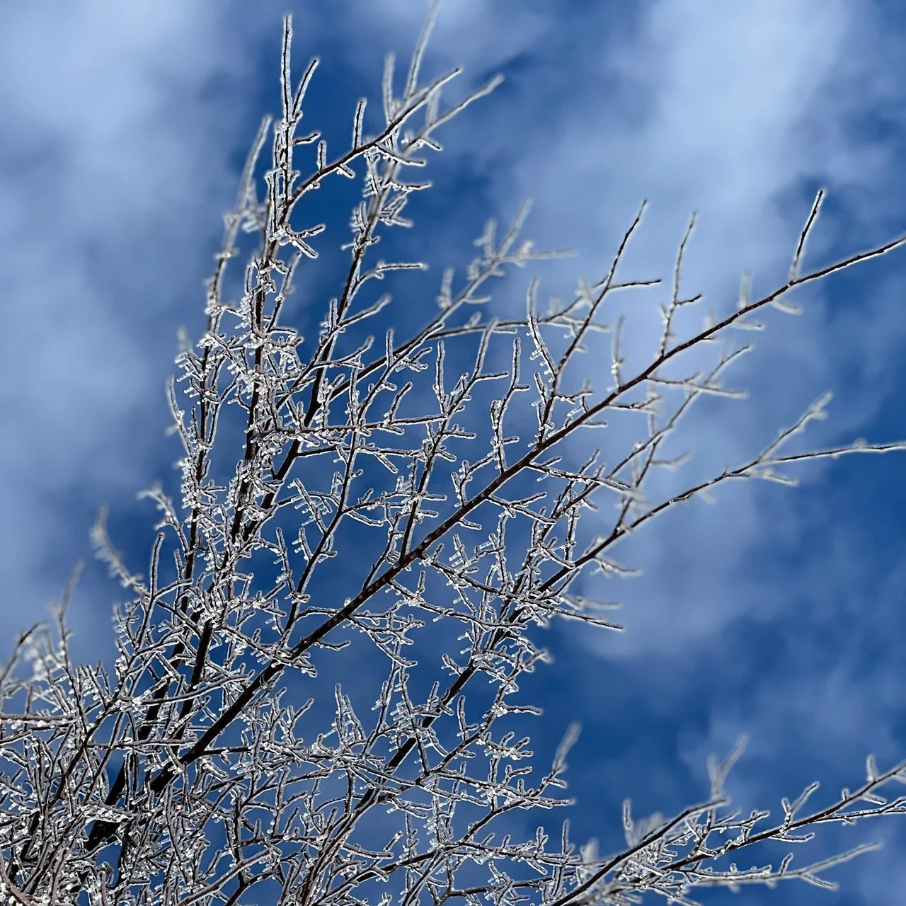 When the sky was finally lit, we threw back the bedroom curtains only to see ice everywhere. It was like we were caught within a snow globe of glass. The weight of which drew everything downward, drooping. Some limbs unsustainable for trees to hold, just cracked and fell to the ground. Some smaller trees bent completely over like executing a gymnastics feat and doing a back bend.